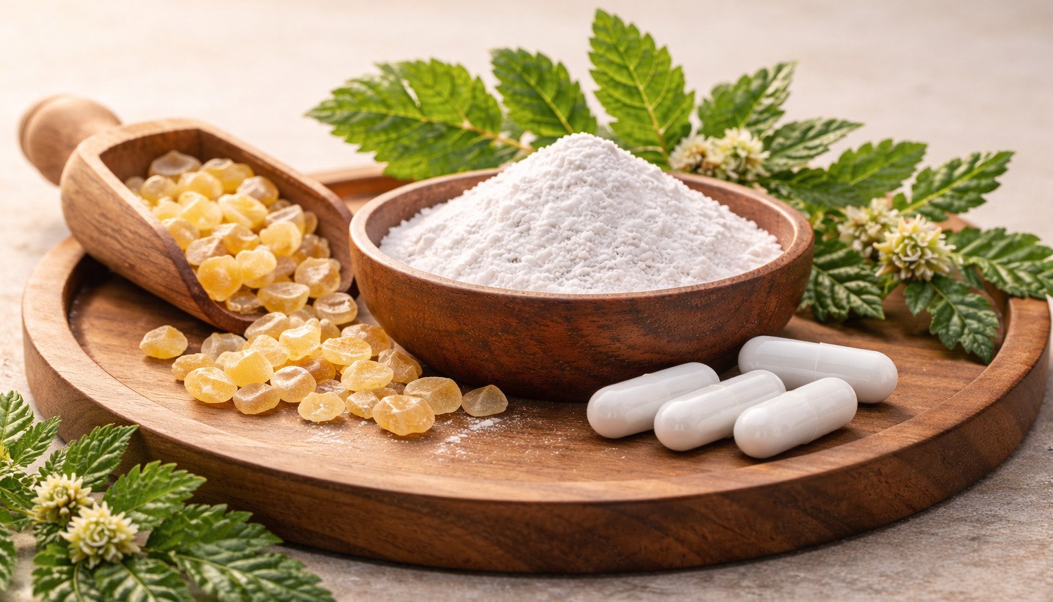 Boswellia serrata (Shallaki) remains one of the most researched resin-based botanicals worldwide. Whether used as a standardized extract or a whole-resin powder, it continues to play an important role in traditional and modern botanical practices.