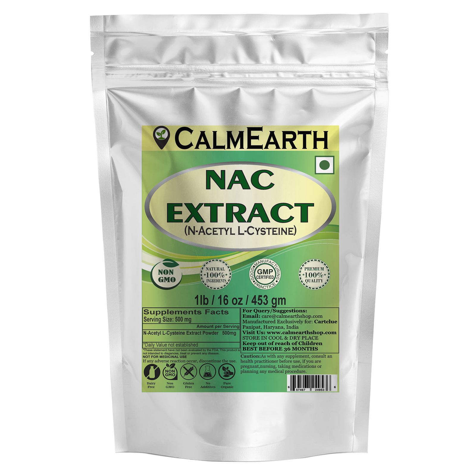 CalmEarth NAC Extract Powder (N-Acetyl L-Cysteine) is a concentrated amino acid supplement known to support antioxidant status, liver health, and respiratory wellness. Manufactured in ISO & GMP certified facilities and independently third-party tested for quality.