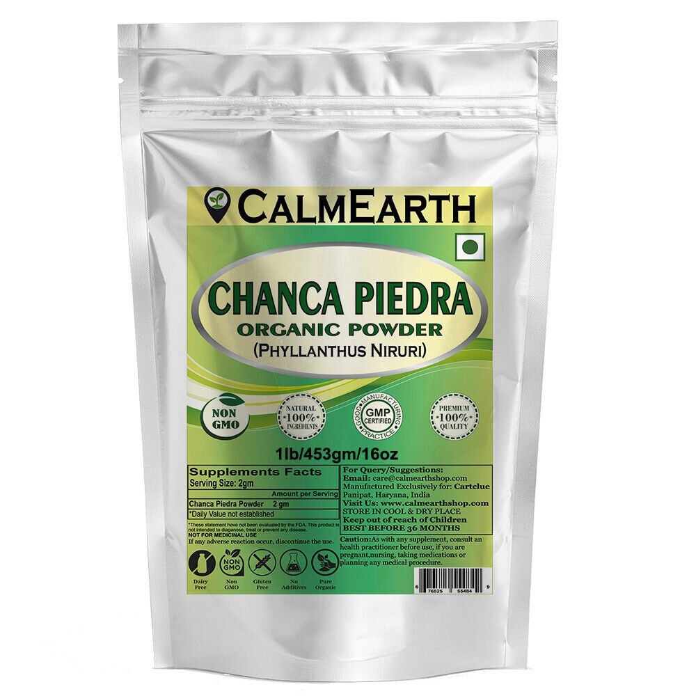 CalmEarth Organic Chanca Piedra Powder (Phyllanthus niruri) is a premium herbal supplement traditionally used to support kidney, liver, and urinary wellness. Manufactured in ISO & GMP certified facilities and independently third-party tested for quality.